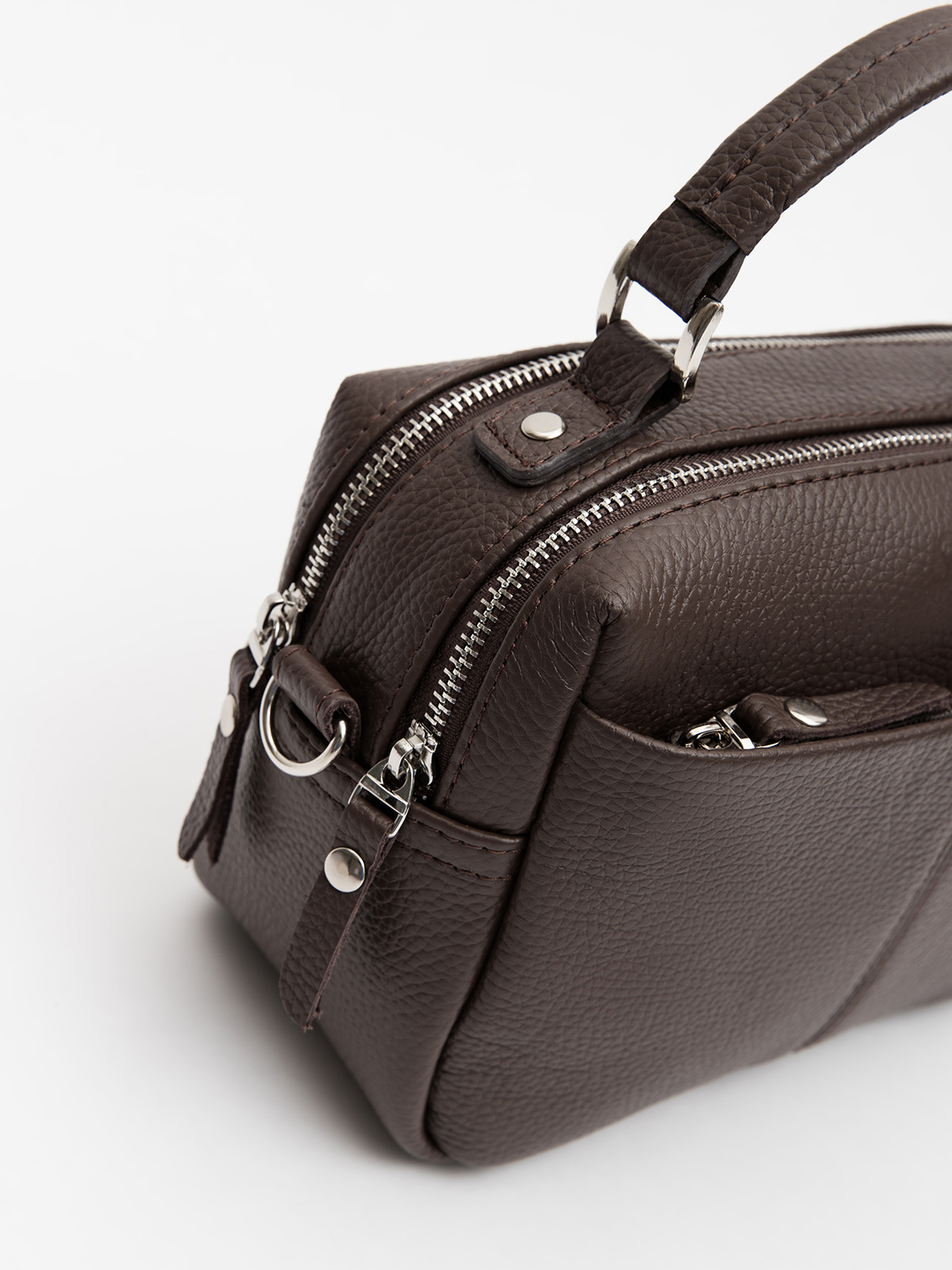 Практичная сумка из натуральной кожи вмещает в себя все необходимое. В ней найдется место для косметики, документов, ключей, телефона, кошелька и прочих нужных вещей и мелочей. Это идеальный выбор для деловой встречи и повседневного использования - эта сумка станет незаменинм аксессуаром в Вашем гардеробе!
